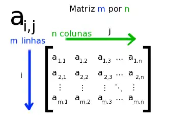De forma geral, numa matriz A de ordem m × n, o elemento é o símbolo na i-ésima linha e j-ésima coluna de A. Assim:.