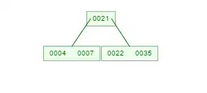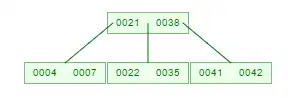 2. Se o elemento não couber na página. Neste caso a página deve ser dividida em duas e o elemento do meio deverá ser promovido , afim de se tornar pai de duas folhas. Para ilustrar vamos inserir o número 42 na árvore abaixo:
