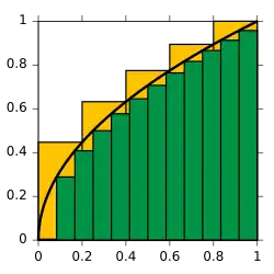 Quando particionamos a figura em retângulos, conseguimos calcular a área dela com um pequeno erro. É claro que enquanto maior for a partição, menor será o erro.