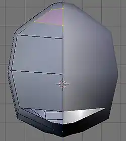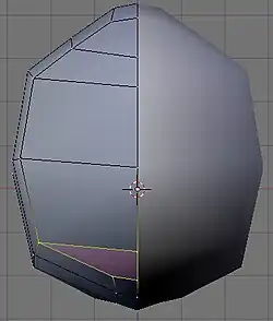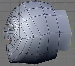 - Mova as novíssimas vértices expulsas adiante do centro da cabeça com G. Agradeça ao modificador Mirror e a Do Clipping, elas não podem ultrapassar o centro do plano (como em Fundindo a parte de trás da cabeça). Assim que elas tocam a linha central, elas se alinham ali e essencialmente se fundem com a linha central