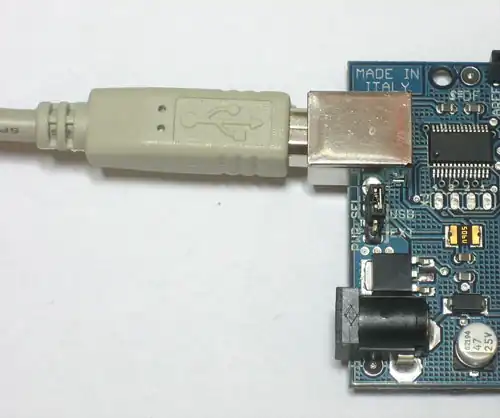 A etapa de fixação de jumper é somente para arduinos Diecimila e mais antigos! Verifique se a posição do jumper está definida corretamente. O jumper deve ser colocado de forma que ele se conecte aos dois pinos mais próximos da entrada DC.