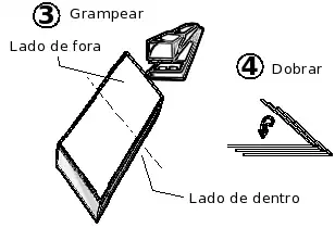 Este método é rápido e barato, muito utilizado em perióricos. Use grampeador comum, as folhas são grampeadas e então dobradas ao meio.