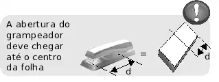 Atenção para o tamanho da abertura do grampeador, que deverá chegar ao meio da folha grampeada.