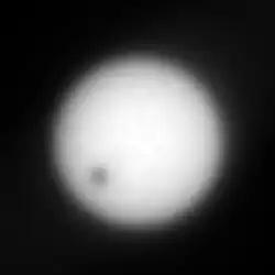 Assim como a nossa Lua fica entre a Terra e o Sol causando um eclipse, Deimos ocasionalmente fica entre Marte e o Sol. Isso é chamado trânsito, que é um termo mais apropriado do que eclipse porque Deimos é tão pequenino e está relativamente longe de Marte, que a porção do Sol que ele esconde é mínima. Alguém no solo de Marte dificilmente notaria o fato.