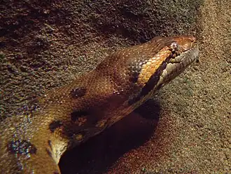 É uma cobra muito assustadora porque é enorme, pode medir até 8 metros e pesar até 150 quilos.