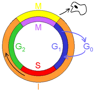 Um ciclo celular normal consiste em três etapas principais. A primeira é a interfase, durante a qual a célula vive a maior parte do tempo e se dá o seu crescimento. A segunda é a mitose, durante a qual a célula se divide. A etapa final é a citocinese. Nesta fase as duas células resultantes da mitose completam a sua separação.
