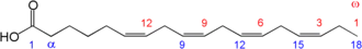 | Ácido linoleico* | Ácido cis-,cis-9,12-octadecadienóico | CH3(CH2)4CH=CHCH2CH=CH(CH2)7COOH | 18:2Δ9,12 | 1 - 5 |