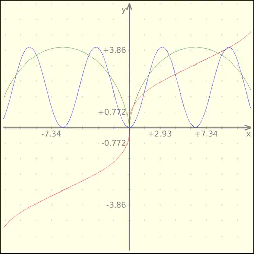Da mesma forma isto nos fornece uma visualização do que acontece quando analisamos um gráfico de forma parcial, ou seja, temos uma função , outra e, finalmente, , se acompanharmos o desenvolvimento das funções simples que formam os valores para cada ponto, temos uma idéia do que acontece com a função paramétrica composta pelas mesmas. Como deve estar explícito, fizemos com que a função que determina os valores de varie ao longo do eixo e que a função que determina os valores de varie ao longo do eixo , o artifício aqui usado permite que usemos os eixos como base temporária para o parâmetro , ou seja ao analisar a função de devemos considerar , fazendo o oposto com a função que determina .