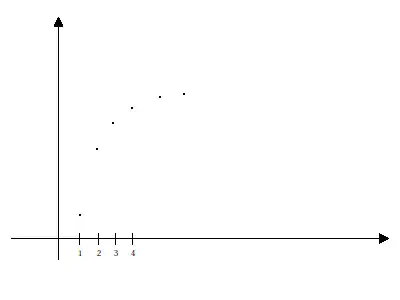 Esta sequência nos fornece para cada termo a somatória dos números inteiros até o nésimo elemento da sequência. A função sequência tem um gráfico onde os valores são apresentados como pontos cuja magnitude é expressa em e o número do indice da sequência é expresso em , vejamos o exemplo abaixo: