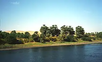 Nas áreas distantes das margens, que as águas não alcançavam, a terra era vermelha. Lá, era o deserto, mais tarde conhecido como o reino dos mortos (onde foram construídos os túmulos e as pirâmides).