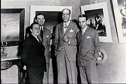 Foto de 1952 mostrando o sertanista brasileiro Orlando Villas Bôas, dois índios calapalos e as supostas ossadas do explorador inglês Percy Fawcett, que teria sido morto pelos calapalos em 1925 na Serra do Roncador, em Mato Grosso, no Brasil -