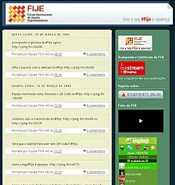 Assim como no Batismo Digital, usamos o Live Stream, ferramenta do BlogBlogs, que serve para fazer um tracking do que acontece na Internet sobre um determinado tema. Dessa vez, a tag utilizada em vários ambientes da web foi #fije.