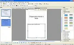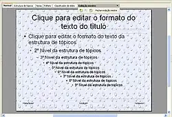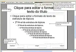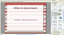 - Painel de Slides: utilizado para conter os slides já criados pelo usuário como parte integrante da apresentação que está sendo editada;