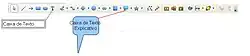 Ao inserir uma caixa de texto, aparece uma tela de desenho ao seu redor. Com esta ferramenta é possível criar áreas de inserção de texto e movê-las para dentro do slide. A barra de ferramentas desenho possui ícones para inserção de caixa de texto.