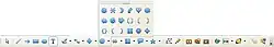 Cada botão da barra de ferramentas possui uma função específica. às vezes estas funções divididas em vários modos e funcionamento e, estão contidos no mesmo botão. Quando isso ocorre, o botão possui uma seta preta em seu canto superior. mantenha o ponteiro do mouse pressionado sobre esses botões para abrir as opções e escolher o modo desejado.
