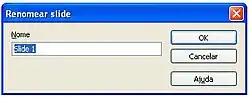 Qualquer uma das opções apresentará a janela abaixo, para que o usuário efetue a alteração de nome do slide.