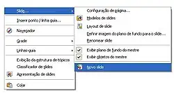 entre outras opções a inclusão de um novo slide.