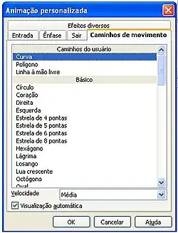 - Nova caixa de diálogo será exibida para seleção dos efeitos de animação.