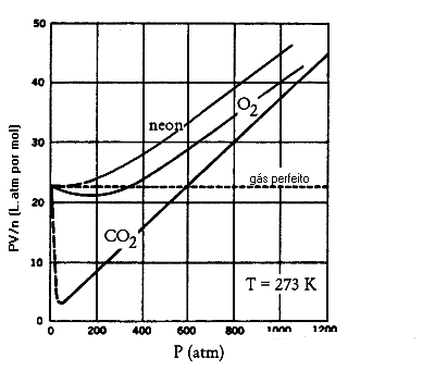 Onde B, que chamamos o segundo coeficiente do virial é negativo para as moléculas de grande tamanho CO2 ou O2 mas positivo para as moléculas de tamanho pequeno (Ne).