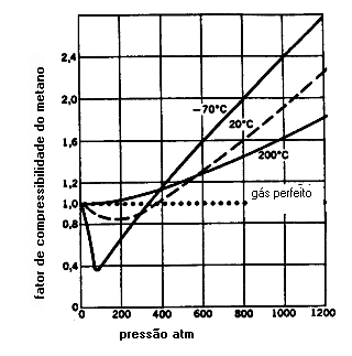 As observações experimentais indicam que Z = 1 unicamente quando P tende para zero. Em geral , Z é diferente de 1 para os gases reais . Pode se notar que grandes desvios são observados a baixa temperatura . A alta temperatura , ao contrario , o metano se comporta como um gás perfeito numa grande faixa de pressão.