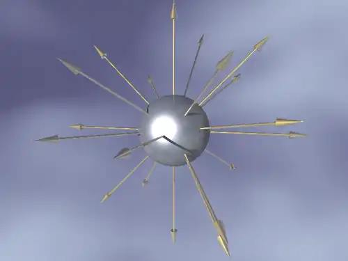 Devemos nos lembrar que existe ainda a simetria axial em torno do eixo z. As figuras estão representadas somente no plano ( x y. A figura acima, por exemplo, deverá ser repensada fazendo-se a rotação em torno do eixo que une as duas cargas. Como ilustração, as linhas de força de uma carga positiva, por exemplo, seria representada como a figura abaixo: