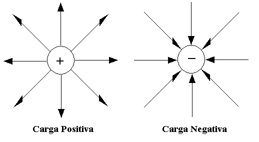 Como vimos anteriormente (Cargas elétricas) existem cargas positivas e negativas. Convencionaremos que as linhas de força de uma carga puntiforme terão direção radial apontando para "fora" se for positiva ou para "dentro" se for negativa (veja a figura abaixo).