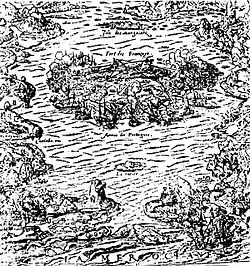Em 1º de janeiro de 1502, supostamente, acredita-se que uma expedição portuguesa liderada por Gonçalo Coelho penetrou na Baía de Guanabara, nomeando-a então como "Rio de Janeiro" por acreditar tratar-se da foz de um rio. Na época, a Baía de Guanabara era um paraíso ecológico, com cardumes de sardinhas, robalos, tainhas, xereletes, camarões, lagostas, golfinhos e baleias, as quais utilizavam suas águas quentes para parir seus filhos no inverno.[5]. O nome indígena do local, kûárana pará (mar semelhante a enseada)[6], que gerou o nome atual de Guanabara, é uma referência ao formato circular da baía. A entrada da baía era chamada, pelos índios, de 'yetéro'y, que significa "rio verdadeiro frio"[7][8].