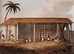 E, em 7 de setembro do mesmo ano, em uma viagem a São Paulo, rompeu definitivamente os laços do Brasil com Portugal[27]. Entrementes, o café, que havia sido introduzido na cidade do Rio de Janeiro no final do século XVIII, se expandia pela Serra do Mar, até atingir o Vale do Rio Paraíba do Sul, em 1825. Nessa região, o cultivo do café encontrou condições favoráveis e se tornou o principal item das exportações brasileiras, gerando uma nova elite social: a dos "barões do café" (os títulos de nobreza eram conferidos aos fazendeiros pelo imperador como forma de conquistar seu apoio político)[28].
