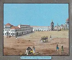 Ao Ciclo do Ouro, em Minas Gerais, se liga ainda a figura histórica de Tiradentes, um dos participantes do movimento da Inconfidência Mineira e que foi enforcado na cidade do Rio de Janeiro em 1792, por "conduzir os povos da Capitânia de Minas Gerais a uma rebelião"[25]. Em 1808, a expansão do Império Napoleônico francês atingiu Portugal, ocasionando a fuga de grande parte da corte portuguesa para o Brasil. Com isto, Dom João VI passou a governar o império Português a partir da cidade do Rio de Janeiro, convertendo-a efetivamente na capital do império. Isto trouxe grandes melhorias para a cidade, como a criação da Biblioteca Real, da Guarda Real, do Jardim Botânico, da Fábrica de Pólvora, da Academia da Marinha, da Academia Militar etc.