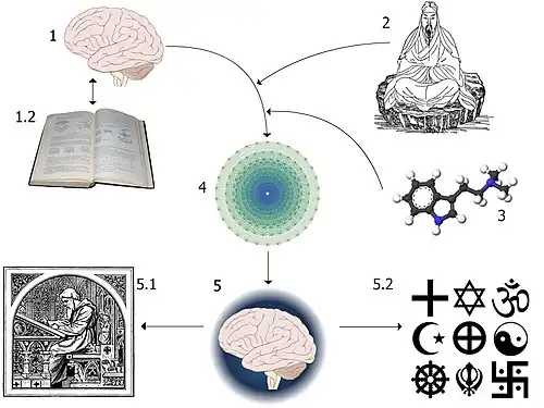 Muitas tradições religiosas e místicas vêem a experiência religiosa como encontros diretos com Deus, Deuses o contato com outras realidades [1] e a visão cientifica normalmente afirma que a experiência religiosa e um experiência normal do cérebro humano que evoluiu em algum momento durante o curso da evolução do cérebro.[2]