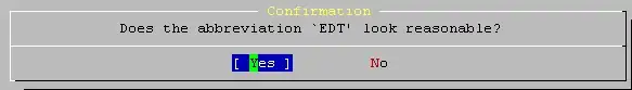 Selecione [ Yes ] e aperte Enter para definir o fuso horário.