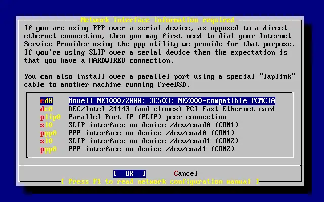 Se você estiver instalando o sistema por FTP, a estação necessitará estar conectada à Internet. As vezes um sítio FTP remoto não terá todas distribuições, como a compatibilidade binária Linux. Esta compatibilidade pode ser instalada posteriormente, se desejado.