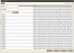 - Seção Procedimentos: Como podemos ver na imagem, o GNU Health ajuda a pesquisar o procedimento usando um filtro com duas categorias diferentes, código e texto longo.