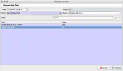 O módulo de laboratório permite que você escolha a partir de uma lista de diferentes exames laboratoriais e cria um exame específico se você precisar, com suas análises, os valores normais, etc.