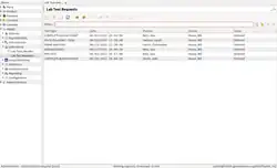 Para verificar um novo pedido de exame laboratorial e para criar relatórios de exames, o pessoal membro do laboratório irá abrir a seção Saúde → Laboratório → Ped Exame Lab na barra de navegação principal. Isso traz a lista dos Pedidos de Exames Laboratoriais, mostrando todas as informações descritas acima.