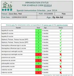 O GNU Health inclui a funcionalidade de imunização no módulo núcleo. Isto inclui esquemas de imunização por país e ano, o processo de vacinação, o histórico de imunizaçãode de pessoas e o relatório de status, para citar os principais aspectos.