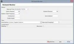 A seção Monitores permite gravar todos os sinais vitais da mãe e do feto. Cada registro de Monitor Perinatal fornece os seguintes valores: