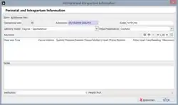 A seção Informação Perinatal documenta tudo o que acontece imediatamente antes ou após o nascimento do bebê, isto é, a partir da semana 28 de gestação até os primeiros sete dias após o nascimento. Cada registro de Informação Perinatal e Intrapartum tem uma aba Principal e uma aba Informação Adicional.