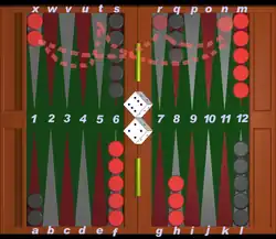 - O jogador não pode mover determinado ponto obtido com os dados se a(s) casa(s) onde o movimento se destina encontrar uma "casa fechada" (Vide o glossário).