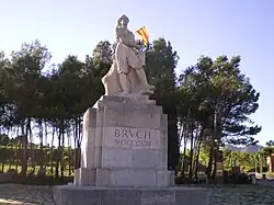 As Quatro Colunas: escultura de Puig i Cadafalch erguida em 1919 na Colina de Montjuic, em Barcelona, simbolizando as quatro listras da bandeira da Catalunha -