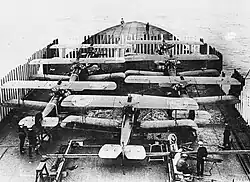 A Primeira Guerra Mundial viu pela primeira vez o uso de porta aviões em combate, com o HMS Furious lançando Sopwith Camels em raides bem sucedidos contra os hangares dos Zeppelins em Tondern, em julho de 1918.
