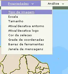 As propriedades do mapa atual podem ser alteradas na opção Propriedades, existente no menu superior do I3Geo.