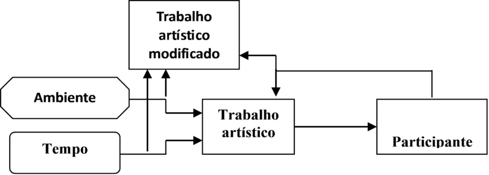 Da narrativa de Primo pode-se extrair um diagrama representativo do modelo que descreve a interação mútua (Figura 18) e um quadro que a compara com a interação reativa (Quadro 5). Ao deslocar o foco para as mediações entre interagentes, Primo investigou o que acontece entre eles, para buscar descrever a qualidade da relação que emerge dessa ação: