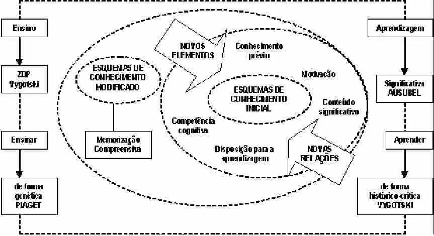 Em síntese, em teoria sócio-histórica, Lev Vygotski enfatiza que o desenvolvimento cognitivo do indivíduo (pensamento, linguagem, comportamento, memória) tem origem em processos sociais; ou seja, as relações sociais se convertem em funções psicológicas via mediação/interação. Por outro lado, David Ausubel ensina que interage de forma significativa o conhecimento prévio do aprendiz com o novo conhecimento e na estrutura cognitiva já existente provoca mudança ou assimilação cuja designação é a aprendizagem significativa. Essa abordagem indica que devem as atividades educativas desafiar a raciocinar aquilo que o aluno já sabe e, ao mesmo tempo, exigir um nível de abstração maior.