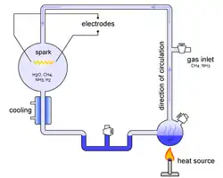 Os gases, após terem sido submetidos a descargas eléctricas na ampola, passavam ao longo de um condensador onde eram refrigeradas, formando-se uma solução na qual eram passíveis outras reações. Como a energia pode destruir as moléculas formadas, fazendo circular os gases, retiraram as moléculas produzidas na fonte de energia, evitando assim a sua destruição. Depois da primeira série de descargas elétricas, o líquido, inicialmente incolor, passou a um castanho-alaranjado, o que mostra que possivelmente novas moléculas se haviam formado. Miller, empregando uma técnica analítica de cromatografia em papel, analisou a composição da mistura, verificando que se tinham formado inúmeros compostos orgânicos, entre os quais vários aminoácidos e outras moléculas básicas da vida.