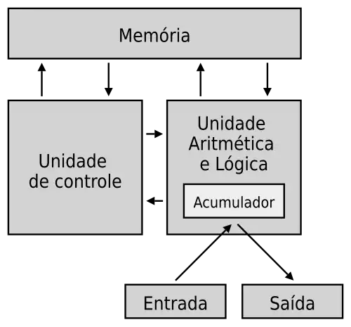 Usualmente, representamos um computador de forma abstrata por um diagrama muito simples que mostra uma unidade de processamento capaz de usar dados que provêm ou devem ser guardados tanto na memória quanto em dispositivos de entrada e saída: