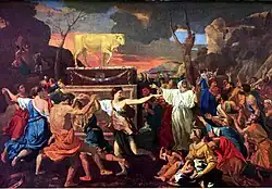 A narrativa segue para a descrição dos eventos decorrentes da demora de Moisés descer do Monte Sinai para onde subira para receber a Torá: o povo de Israel crendo que Moisés havia morrido constroem para si um bezerro de ouro para os guiarem de volta ao Egito. Moisés retorna ao povo e vê este dançando ao redor do ídolo. Moisés quebra as tábuas dos mandamentos e queima o ídolo. D-us pretende consumir o povo, mas é aplacado pela intervenção de Moisés, que retorna ao monte e recebe um segundo conjunto de tábuas dos mandamentos.