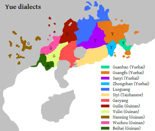 No ano 226, a província de Guang foi formada pelos territórios atuais de Guangdong e Guangxi. Durante muito tempo, mais e mais chineses Han migraram para o sul na direção dessa província, trazendo com eles sua língua.