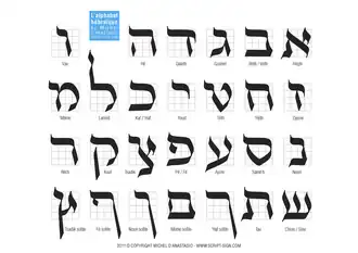O hebraico usa o sistema abjad *[1] e se escreve da direita para a esquerda. O alfabeto hebraico consiste em 22 letras com 5 letras finais e é derivado do alfabeto aramaico, que por sua vez é derivado do alfabeto fenício, a fonte de muitos sistemas de escrita hoje. Na escrita em hebraico (e outras línguas semíticas), a maioria das vogais são escritas opcionalmente como diacríticos (é um sinal gráfico que se coloca sobre, sob ou através de uma letra para alterar a sua realização fonética, isto é, o seu som, ou para marcar qualquer outra característica linguística).