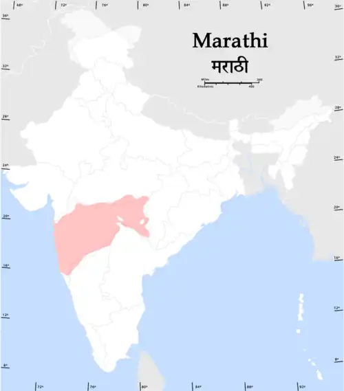 Marathi é falado no estado de Maharashtra na Índia. Também é a língua oficial do estado e é considerado uma das dezoito línguas oficiais da Índia. Hoje em dia, o marathi é falado também nas comunidades Maharashtrianas do mundo inteiro.